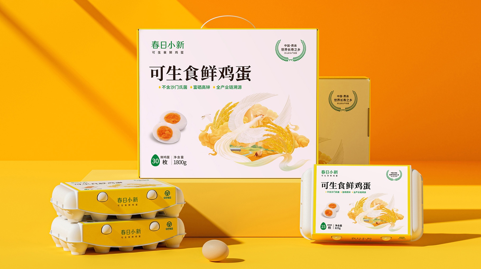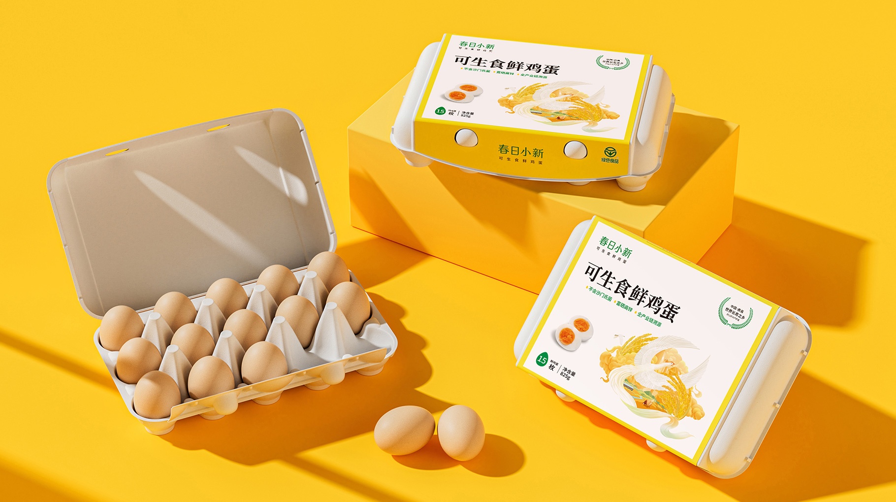 同道對(duì)春日小新可生食鮮雞蛋產(chǎn)品包裝進(jìn)行重新的視覺設(shè)計(jì),以區(qū)別市面上花花綠綠的國潮插畫,以更加具有質(zhì)感及獨(dú)特的視覺符號(hào)讓產(chǎn)品更具檔次感,便于在琳瑯滿目在終端貨架陳列中更加具有產(chǎn)品的識(shí)別力及認(rèn)知力。